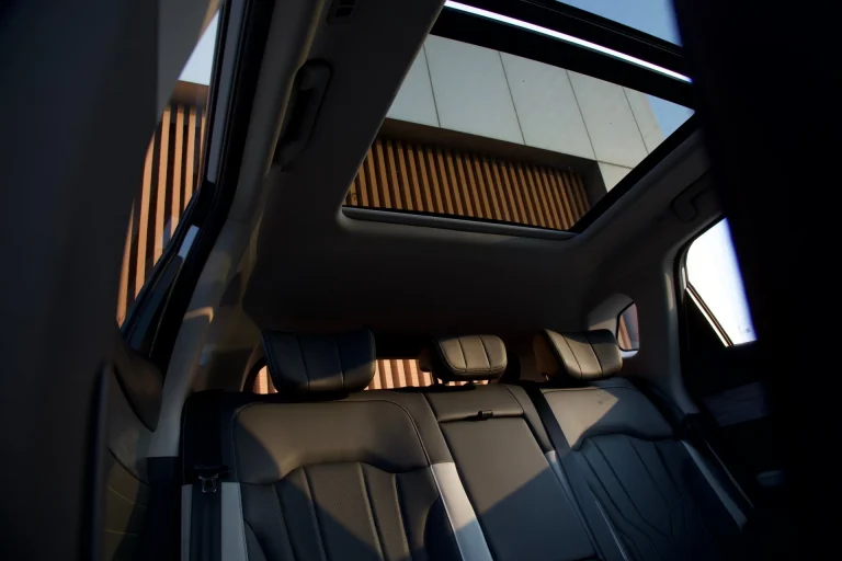 A spacious panoramic sunroof with an airy feel provides natural lighting.